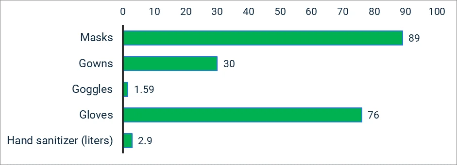 Supplies (PPE) needed by health workers monthly against COVID-19 worldwide 2020